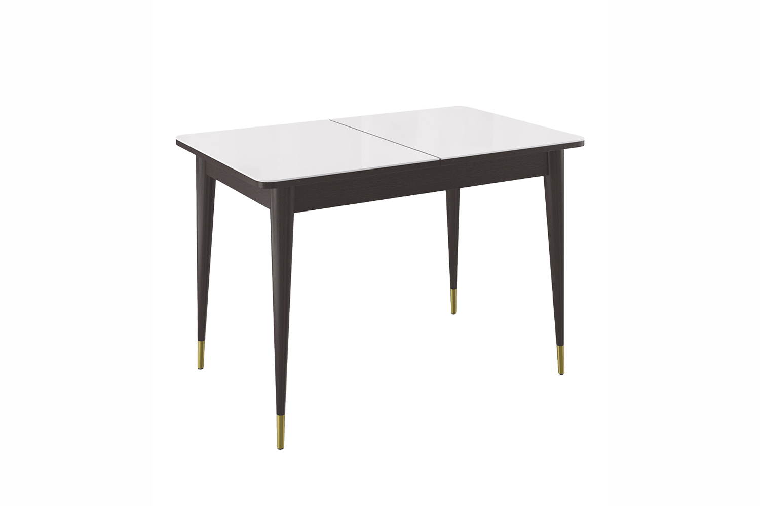 Стол обеденный Мане прямоугольный раздвижной К1100 опоры цвета венге с металлическими наконечниками, столешница - стекло белое глянец.