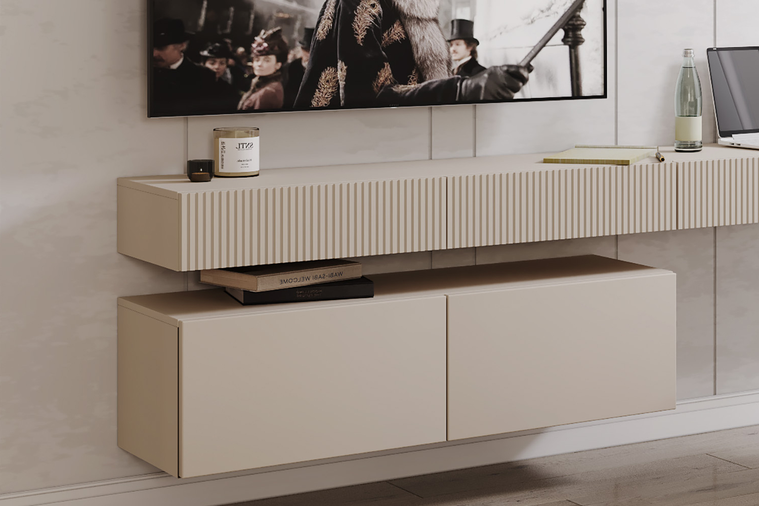 – описание: стиль современный, минимализм, цвет кашемир серый, размер 16x120.1x37.1 см, назначение для дома.